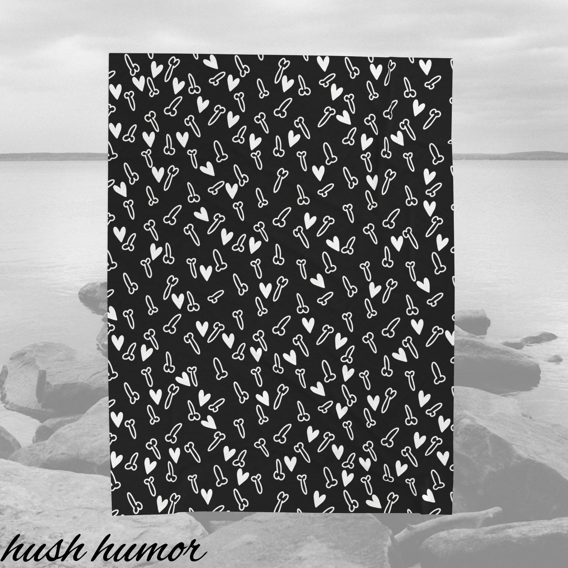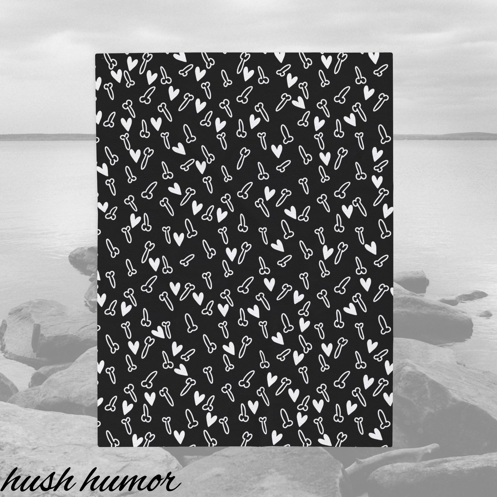 Funny and Cute Black and White Penis Plush blanket