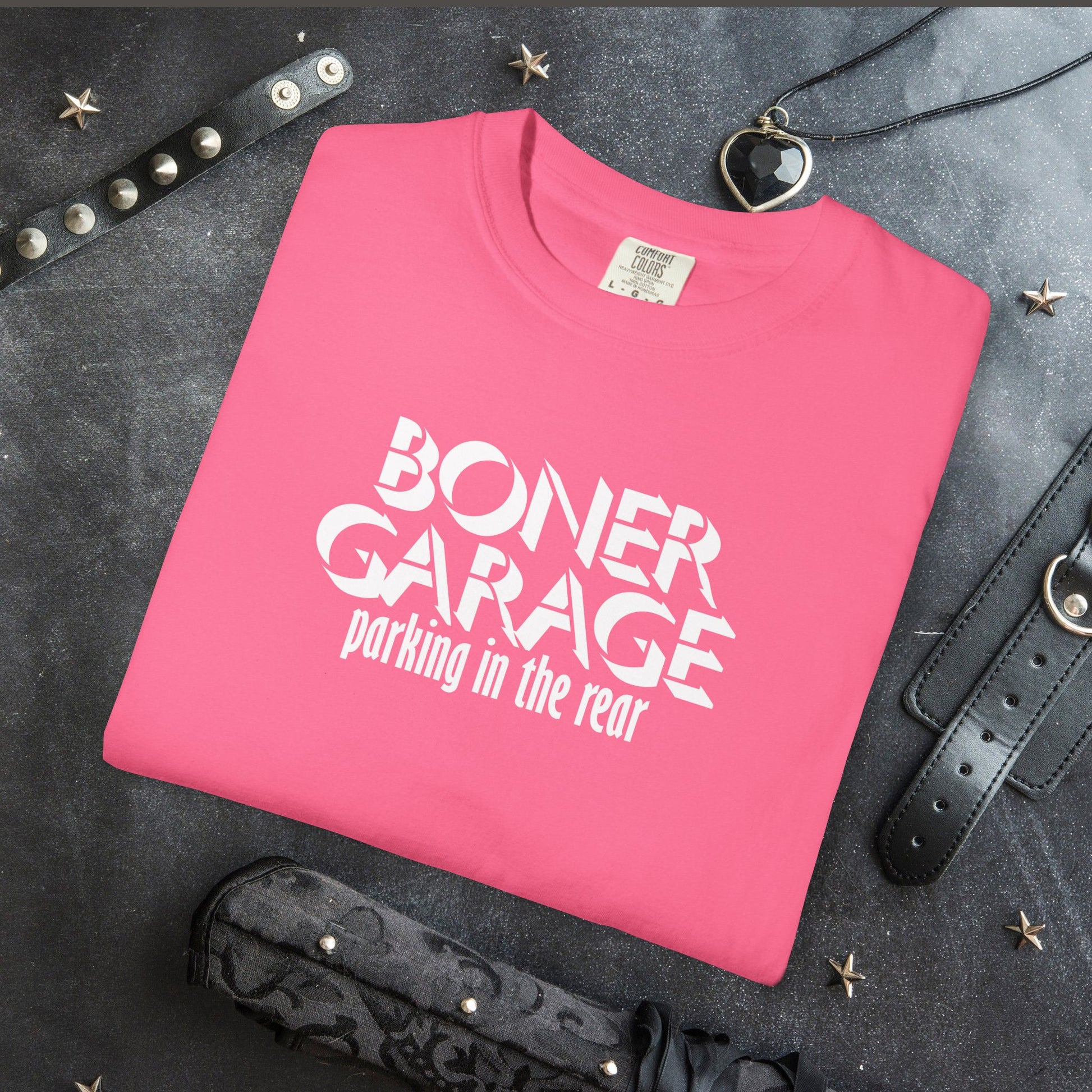 Bring shock value and laughs with the Boner Garage Parking in the Rear T-Shirt — a hilarious, unapologetic tee made for hot moms, bold party-goers, and women who own their sense of humor. Perfect for summer events, BBQs, and bachelorette parties, this shirt turns heads and keeps the jokes coming.