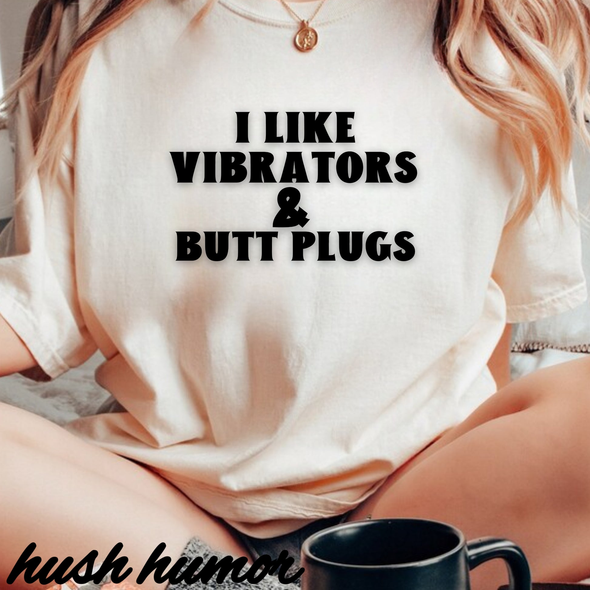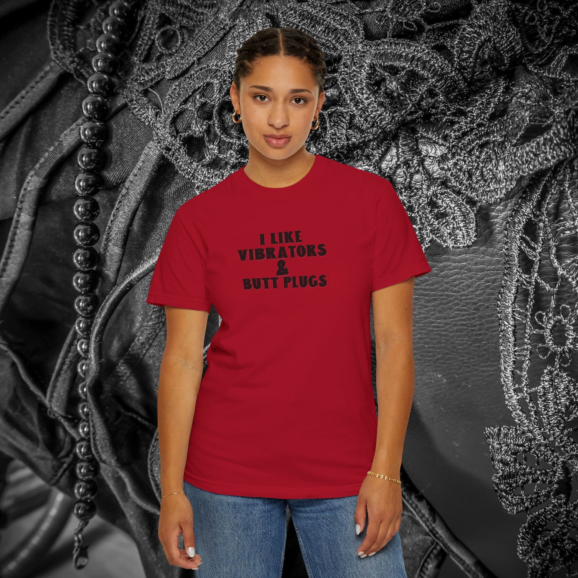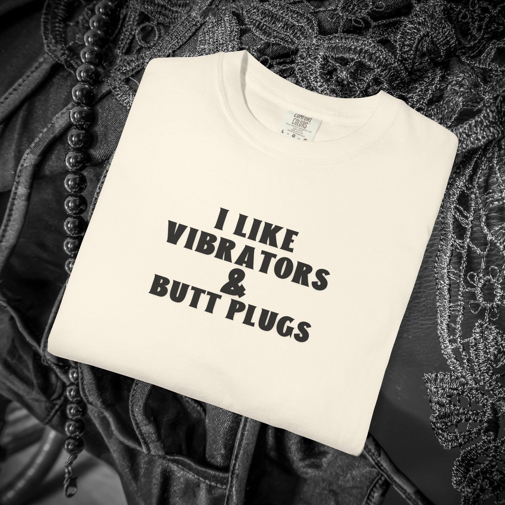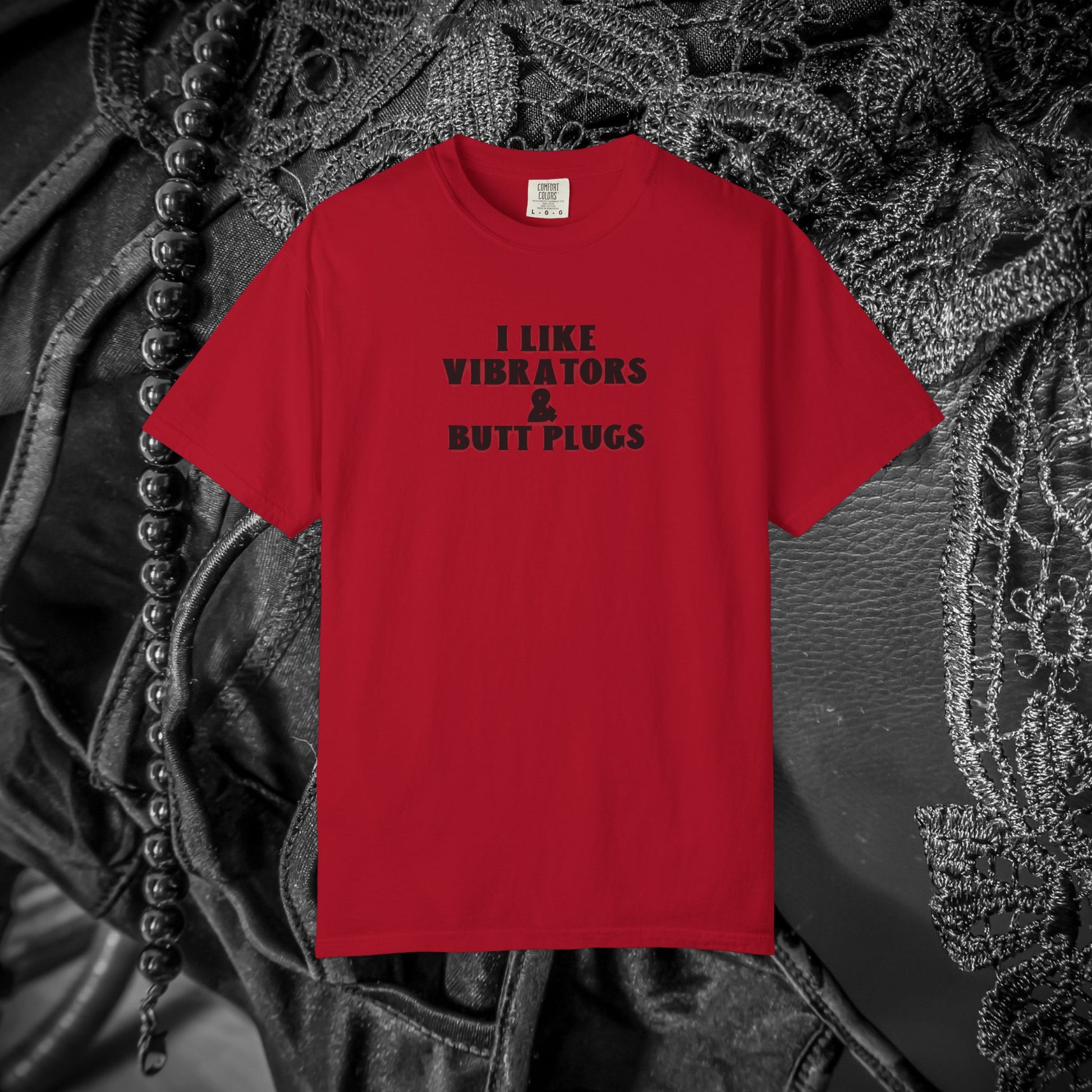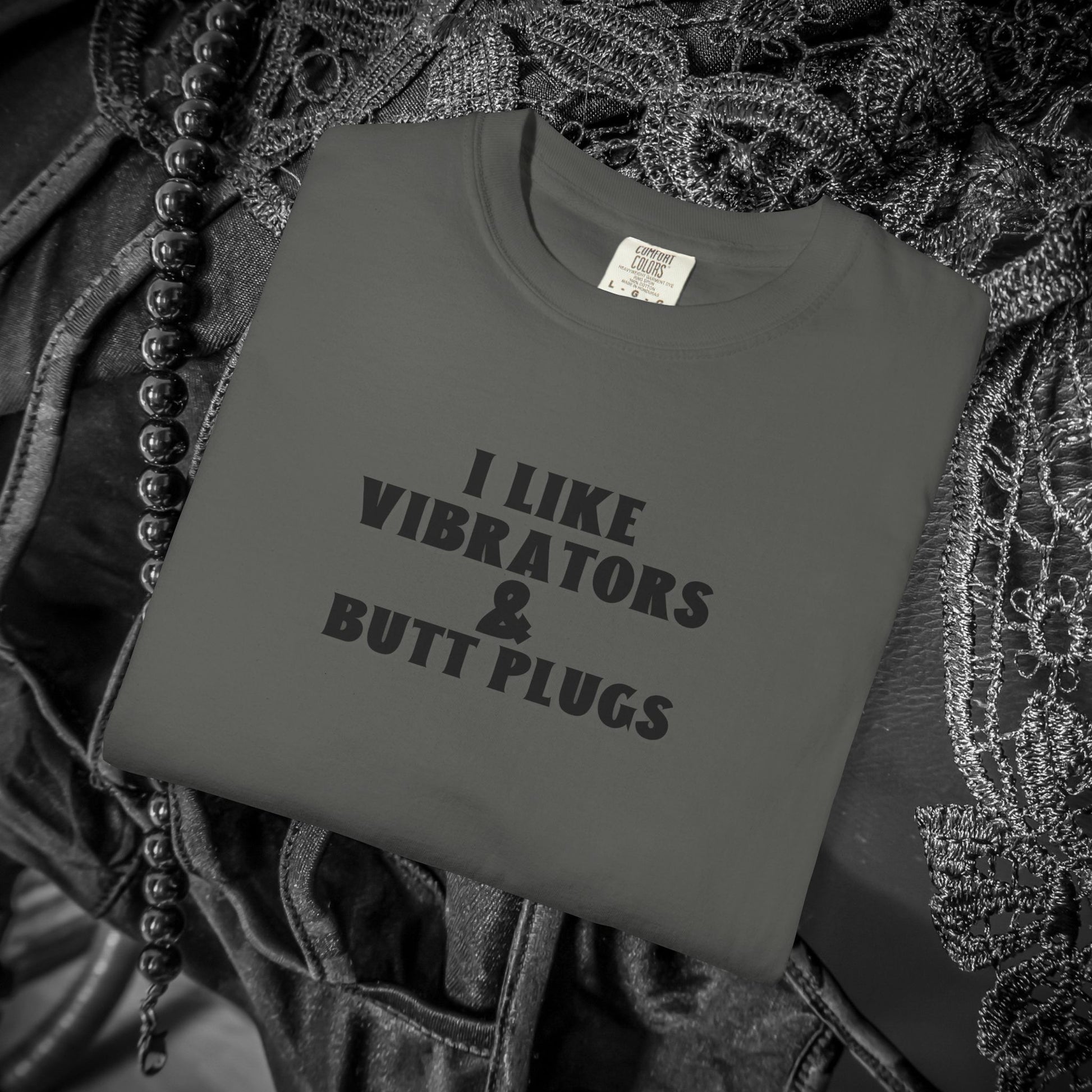 Bring the laughs and raise some eyebrows with this Funny Butt Stuff Shirt — the perfect naughty adult tee for those who love to stir the conversation. Featuring the unapologetic “I Love Vibrators and Butt Plugs” design, this Comfort Colors booty shirt is ideal for wild parties, bachelorette events, or as a hilarious gift for your favorite kink-friendly friend.