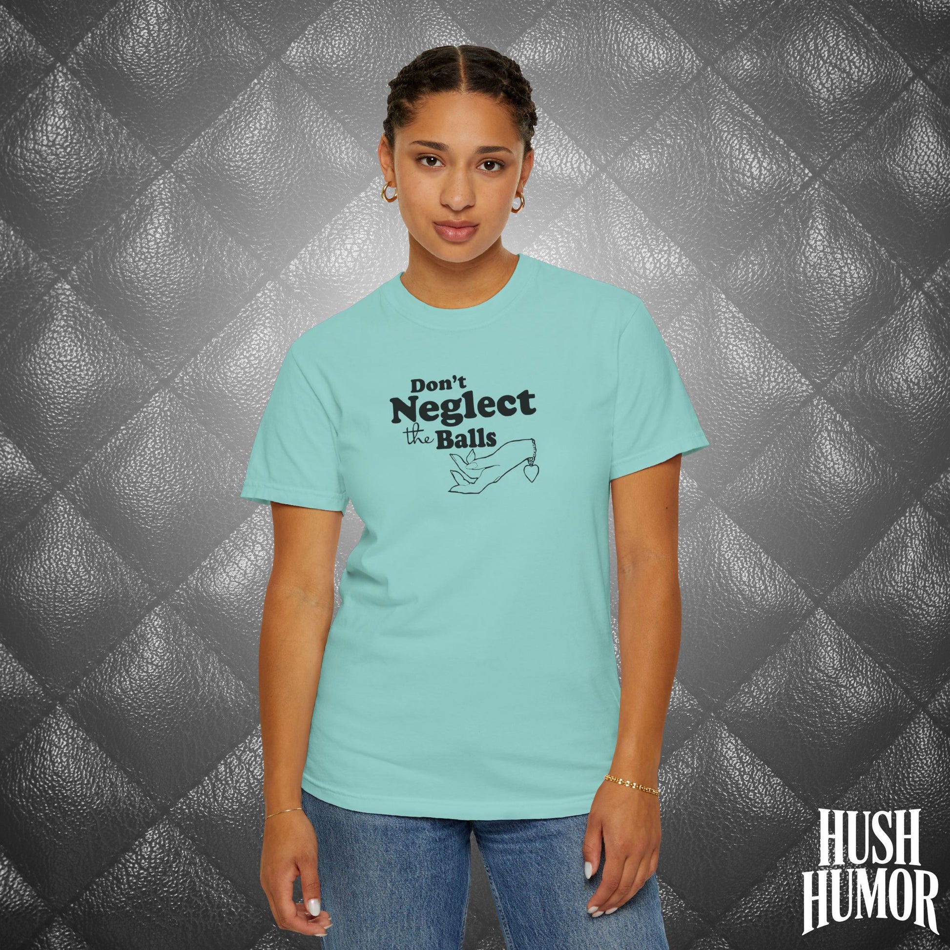 Don't Neglect the Balls Funny T-Shirt – Naughty Girl Comfort Colors Sex Shirt, Inappropriate Hot Wife Gift, Offensive Sexy Graphic Tee