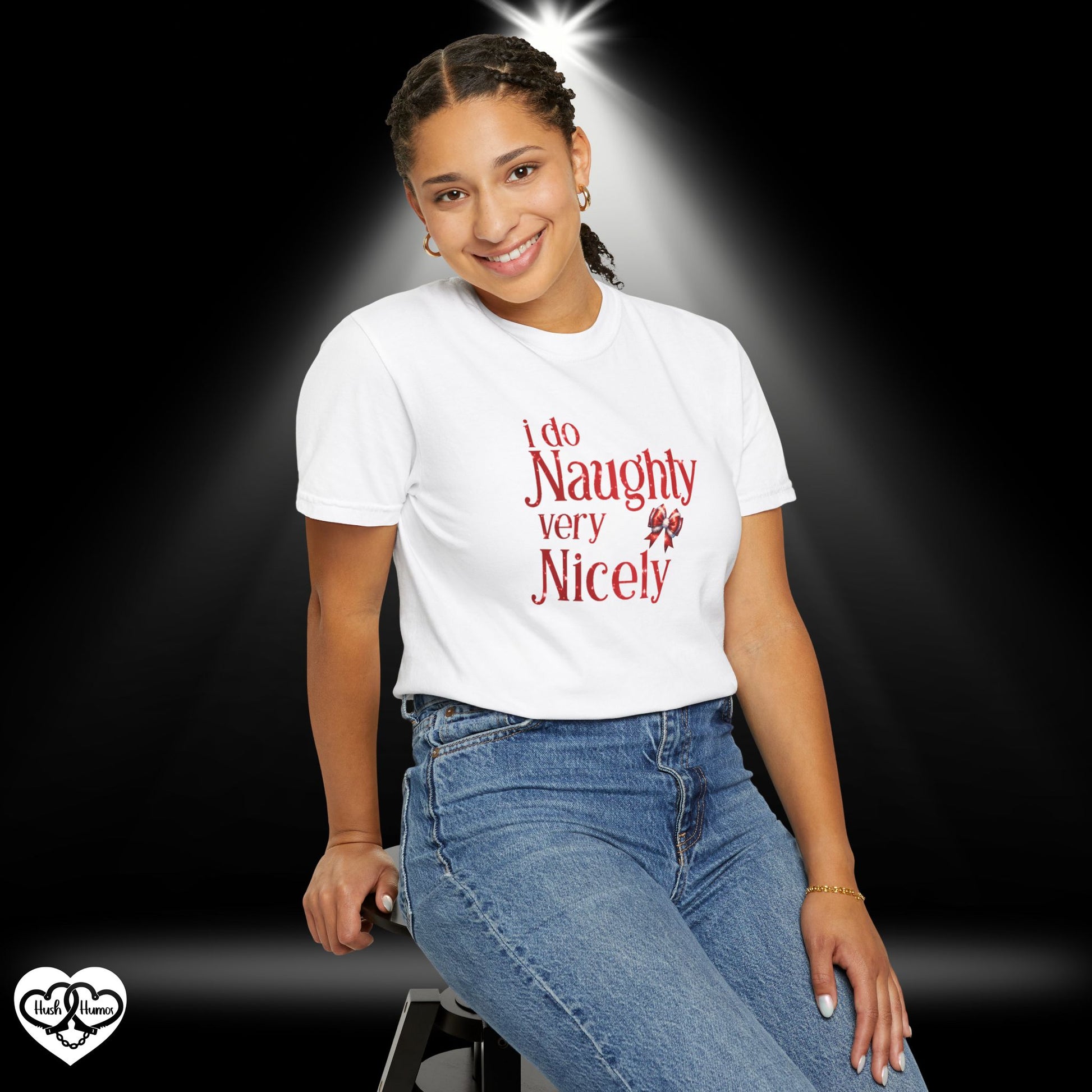 I Do Naughty Very Nicely Christmas Tee – Funny Adult Holiday Party Shirt