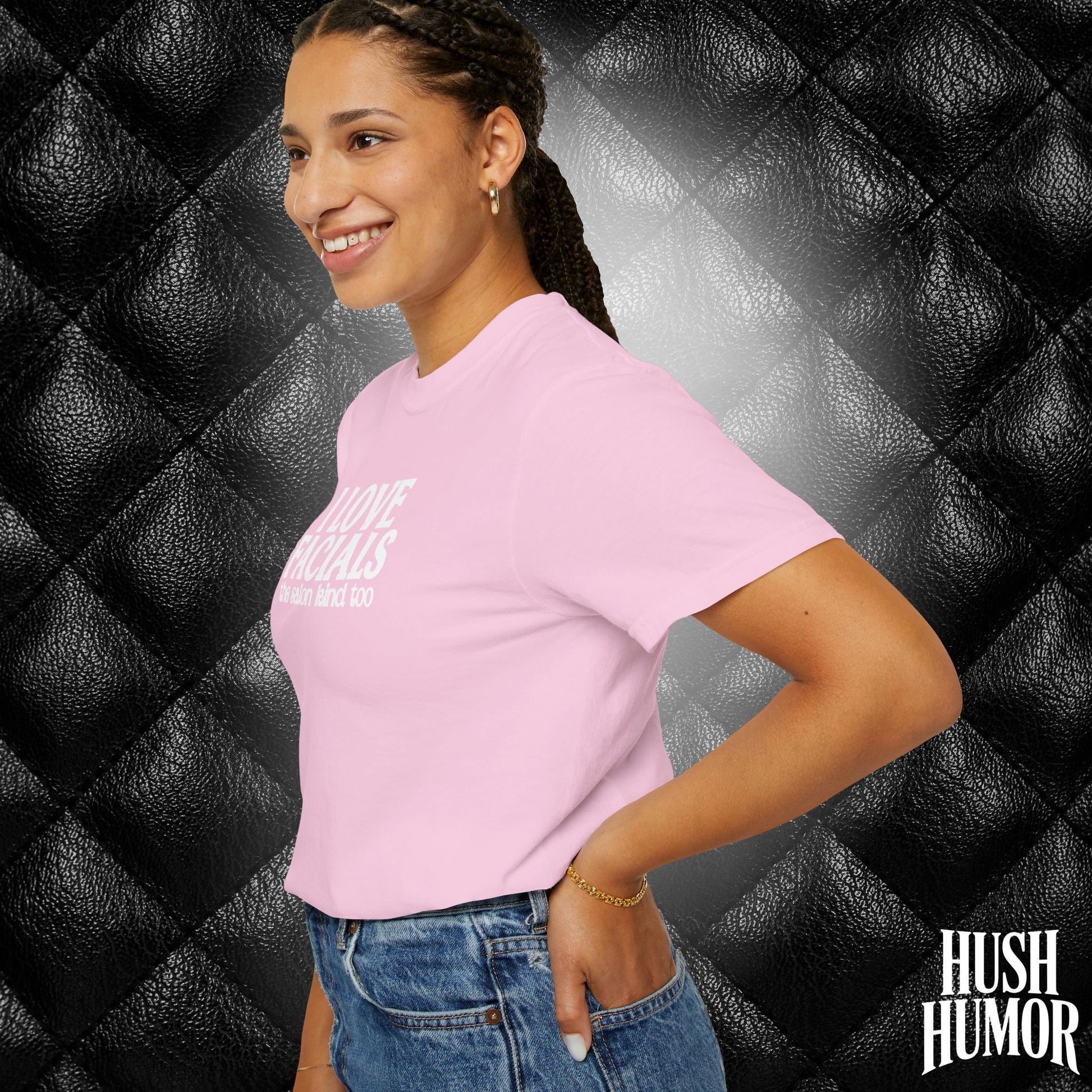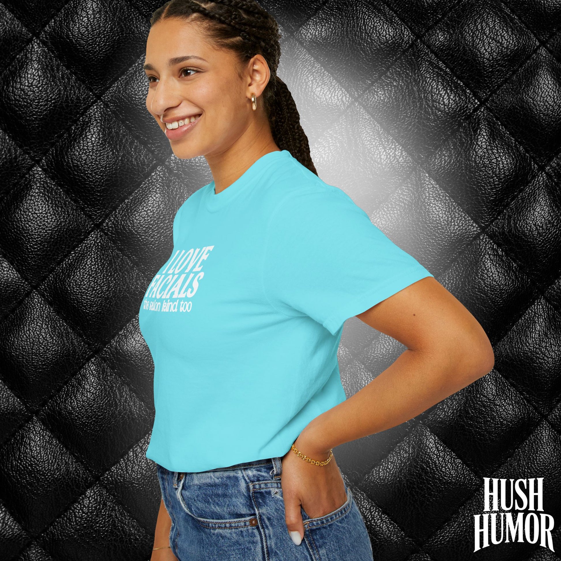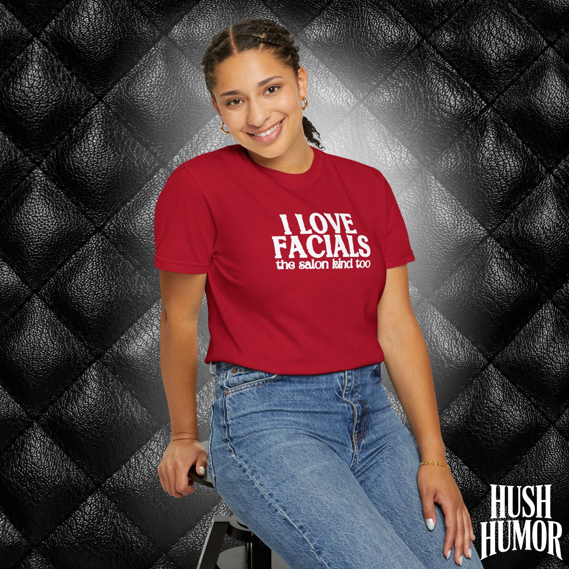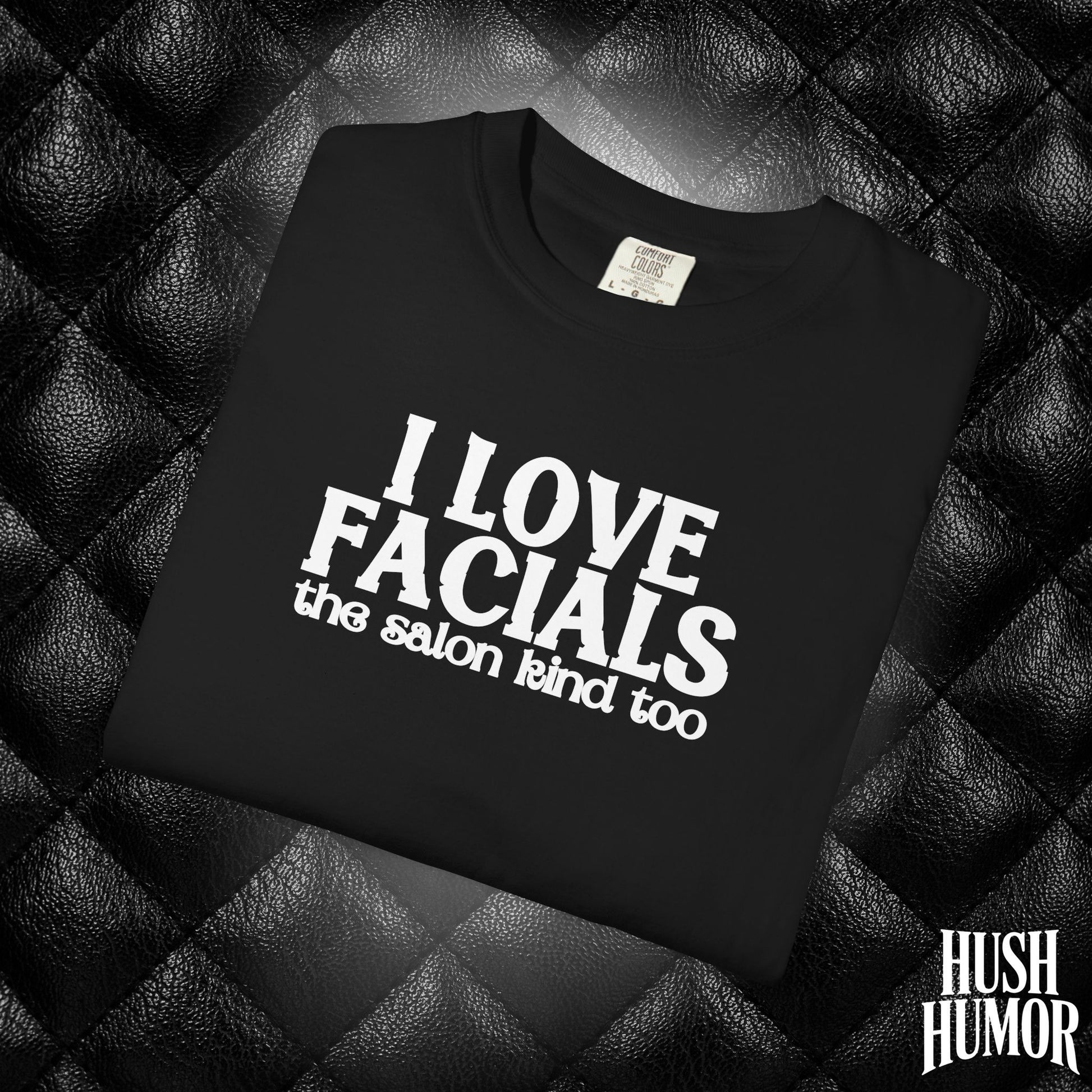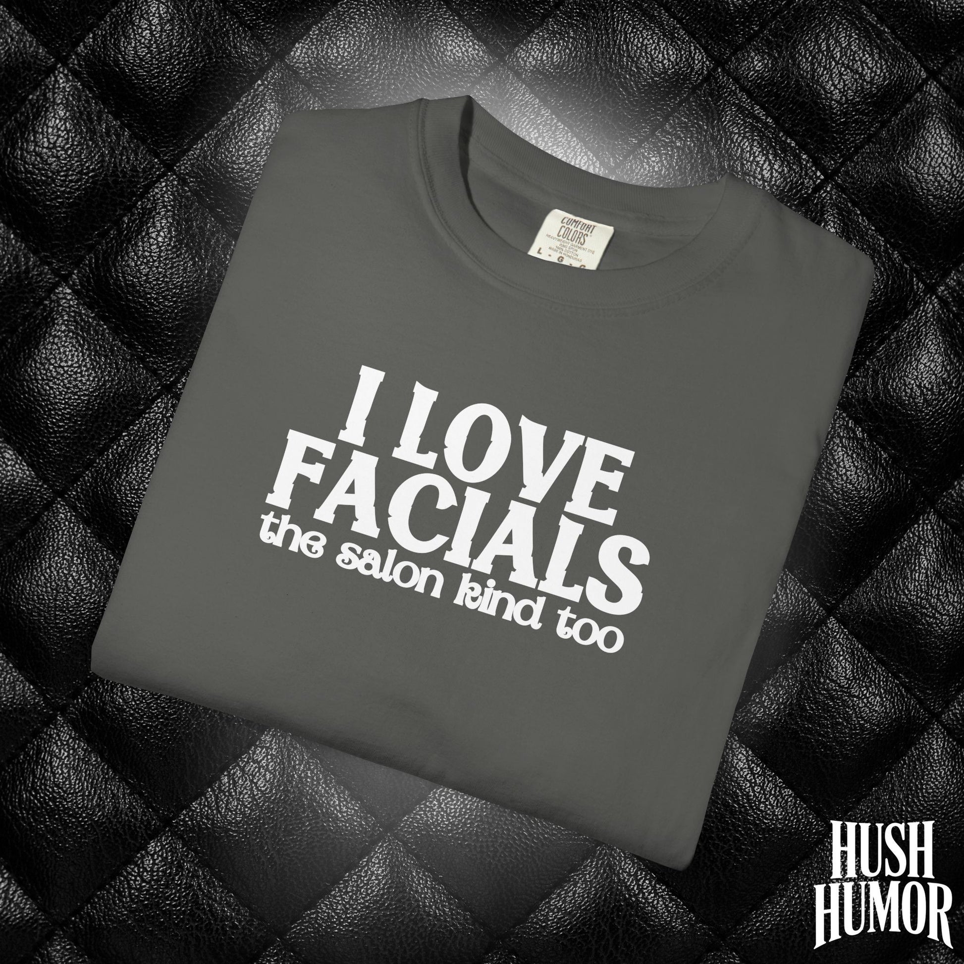 Get laughs with this “I Love Facials” naughty women’s tee — perfect for dirty gag gifts, white elephant exchanges, and bold adult humor.