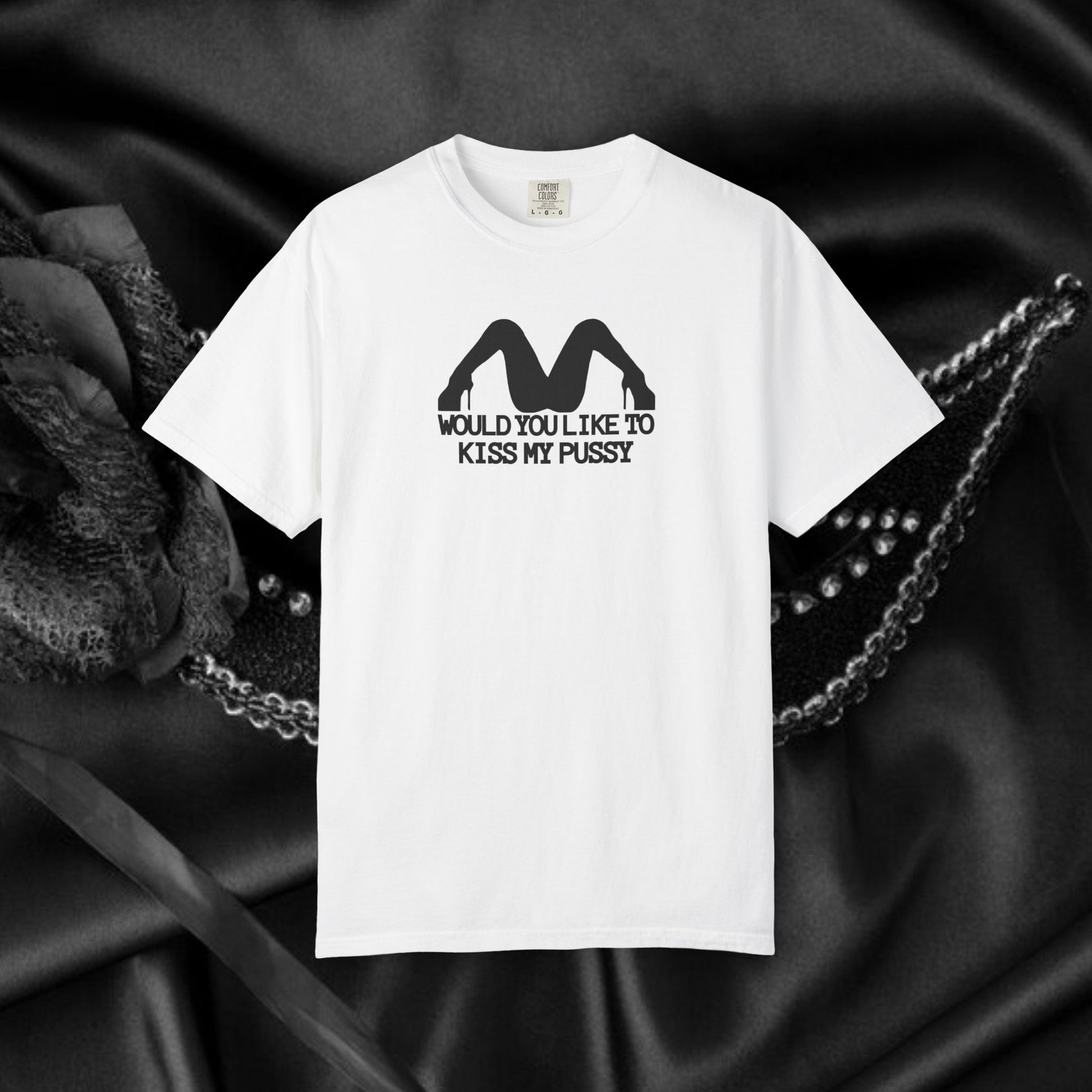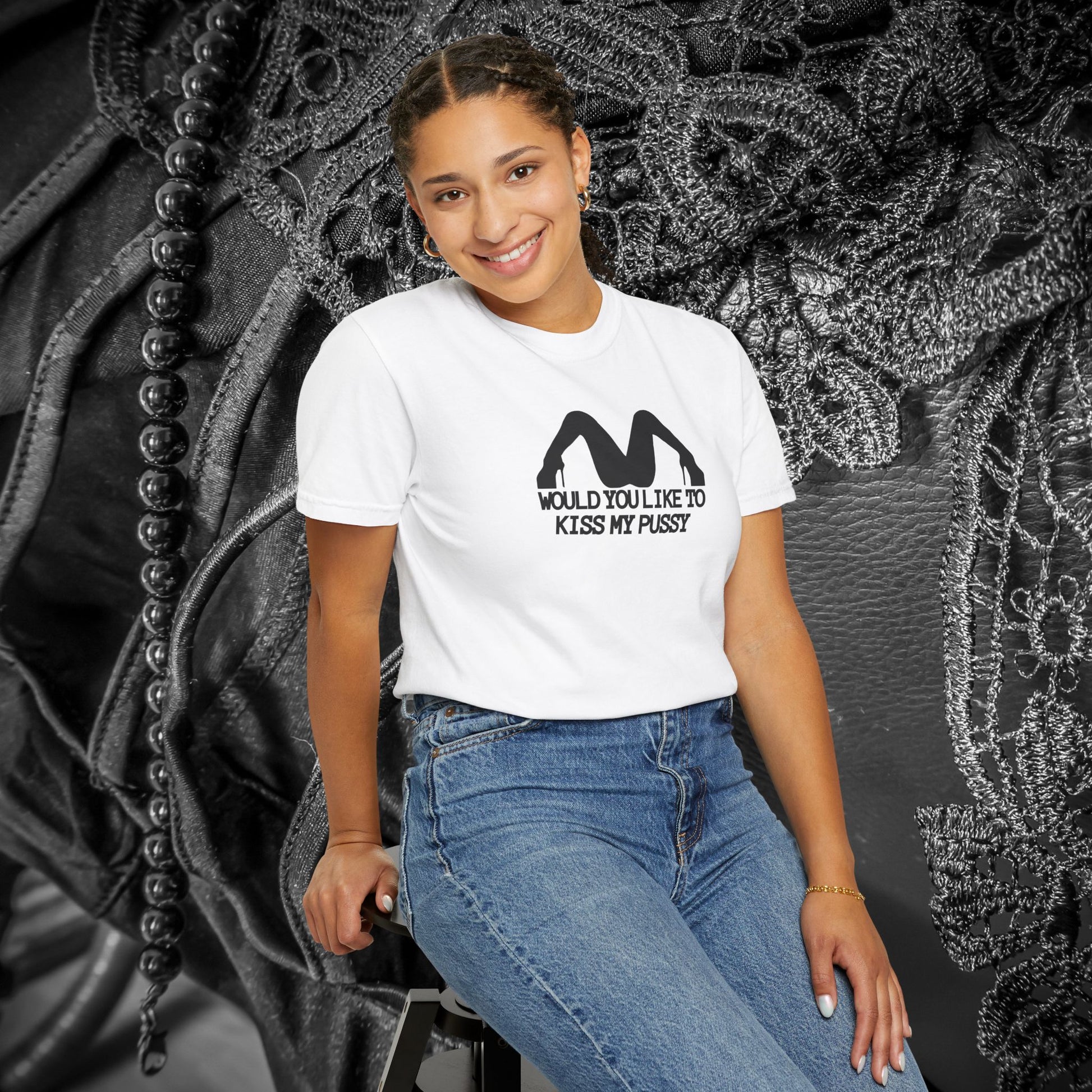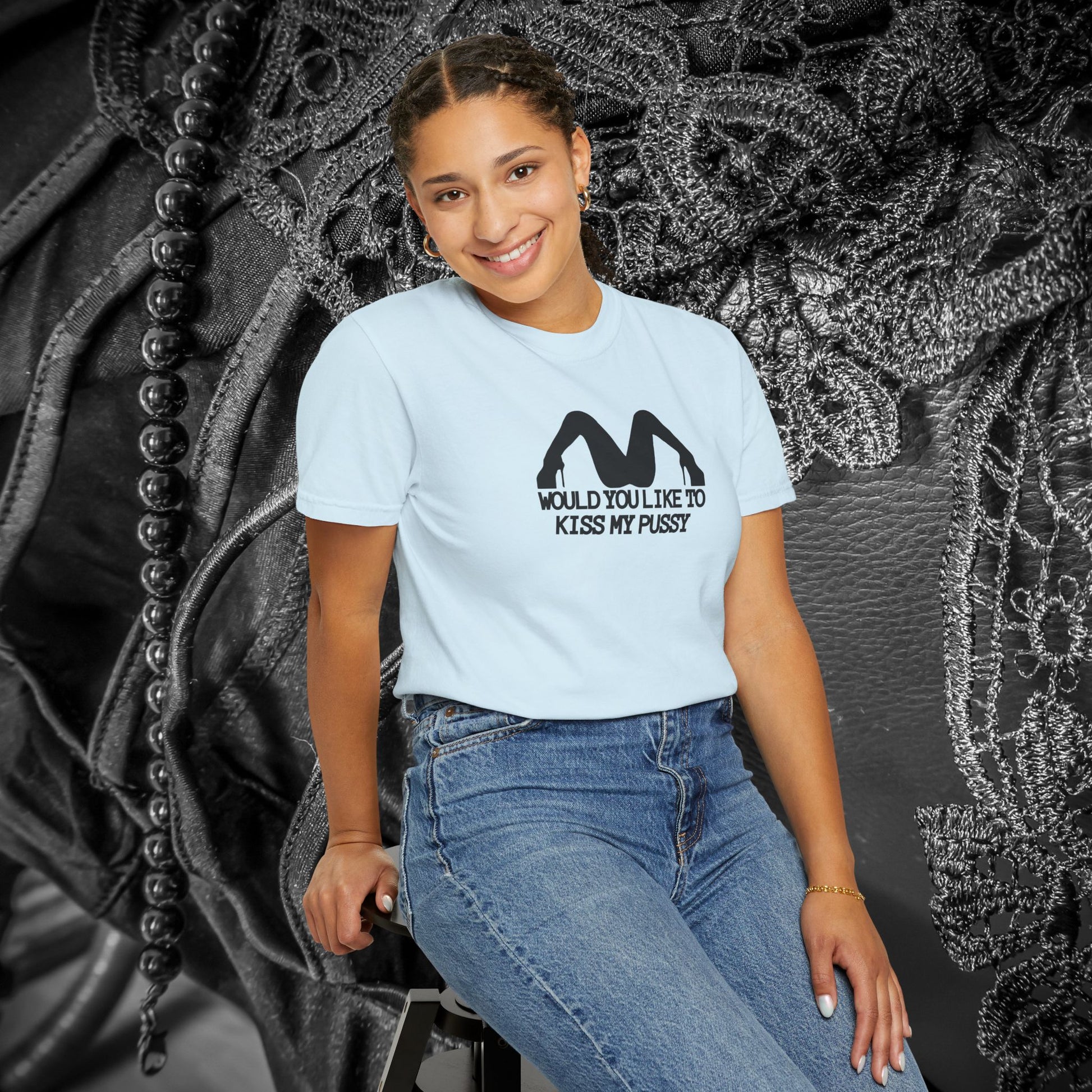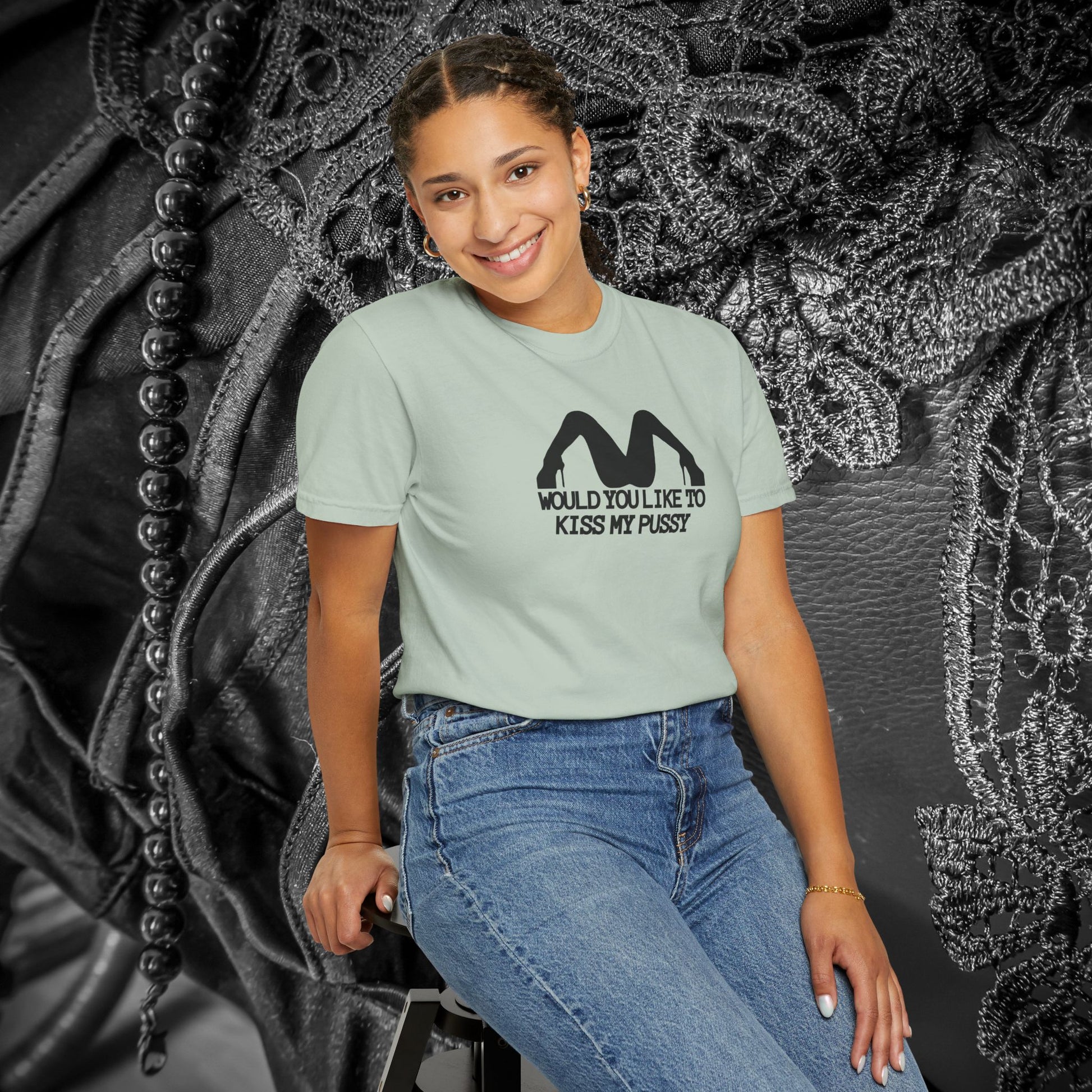 Would You Like to Kiss My P*ssy funny Ladies T-Shirt, Inappropriate NSFW Comfort Color Pepper tee