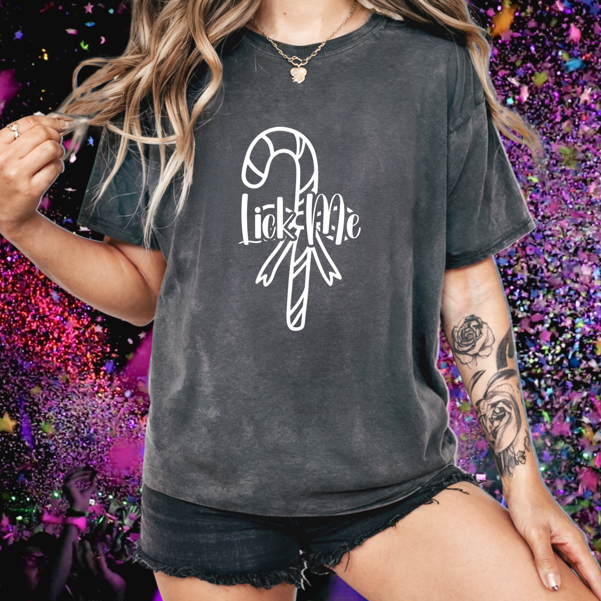 Get festive the naughty way with our “Lick Me” Candy Cane Tee — the perfect mix of holiday spirit and suggestive humor. Whether you’re hitting a Christmas party, joining a holiday gag gift exchange, or just want to show off your cheeky side, this shirt guarantees laughs.