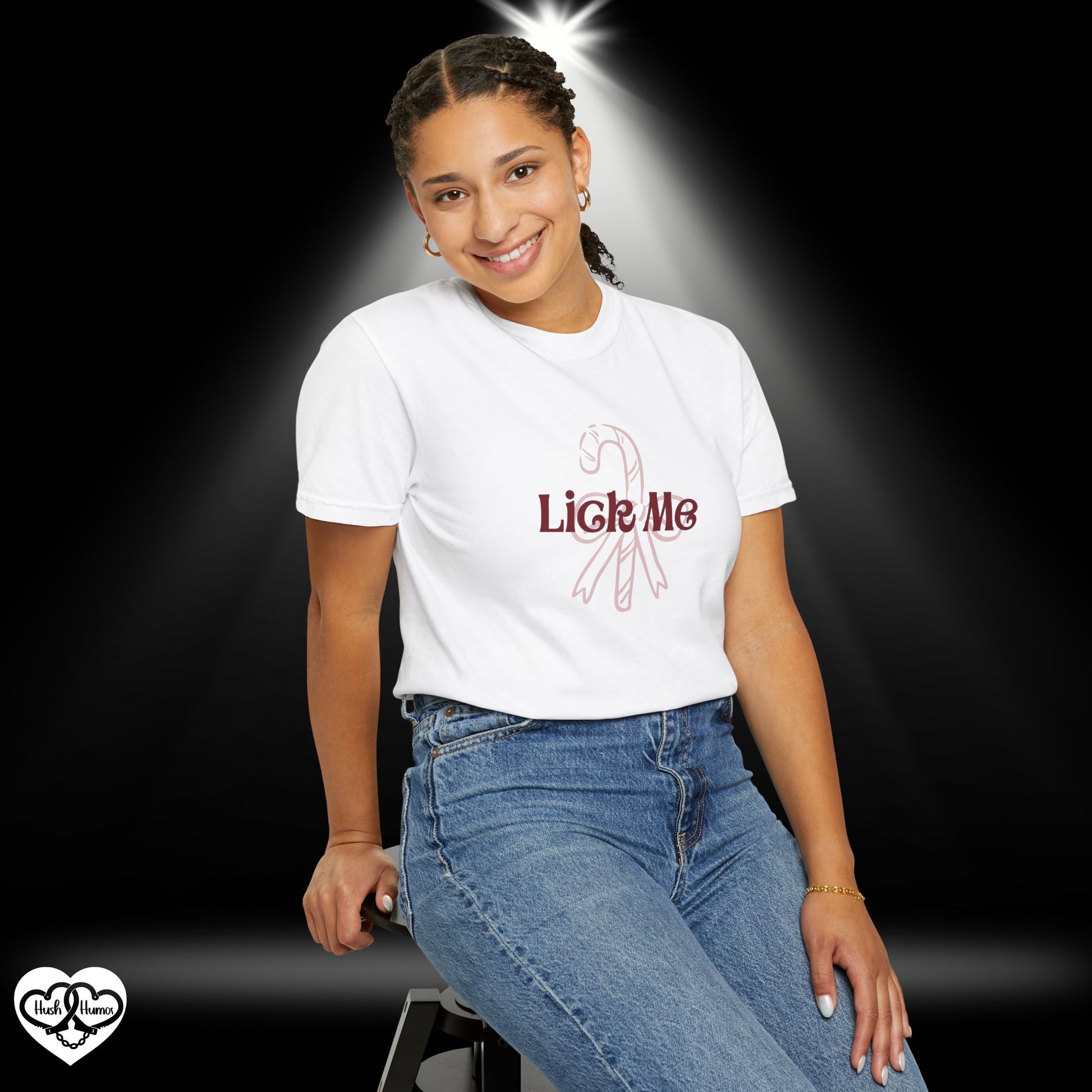Lick Me Candy Cane Christmas Tee – Funny Adult Holiday Party Shirt
