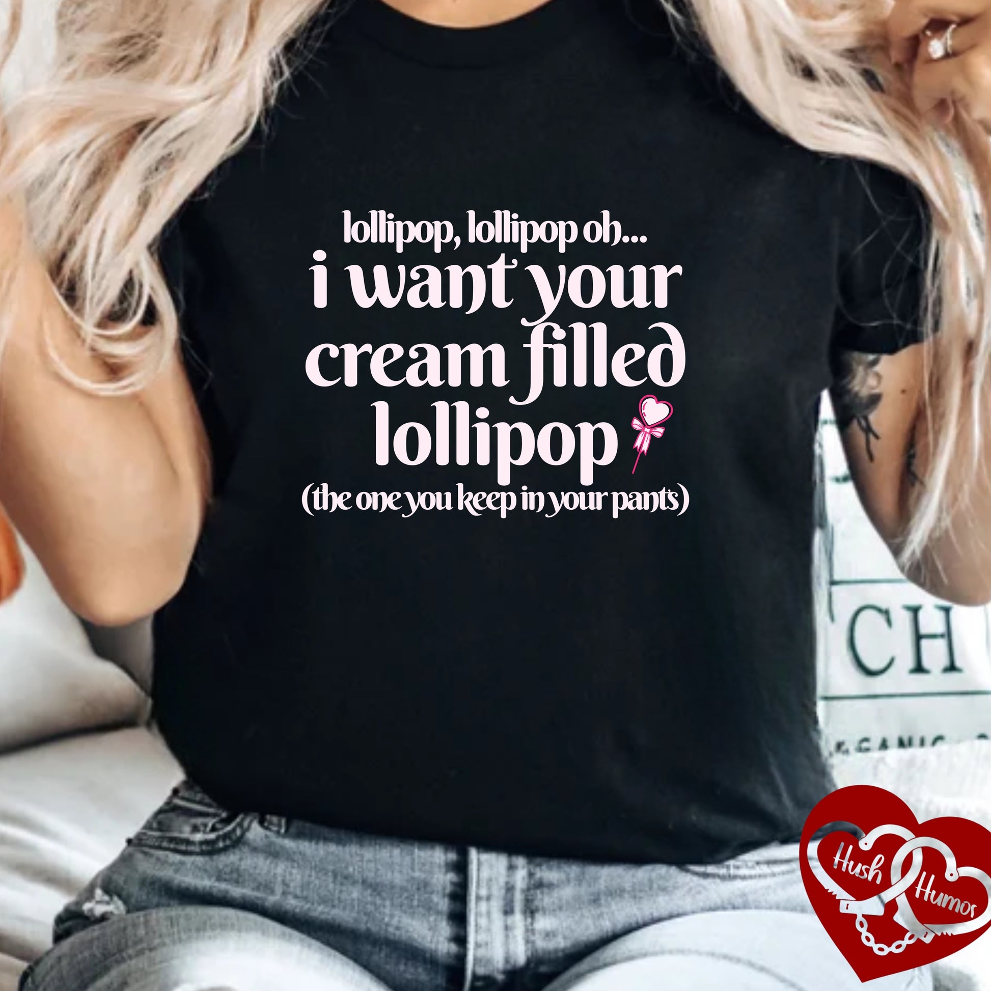 Sexually suggestive lollipop T-shirt, funny innuendo gift for hot wife, hot girl summer outfit, sexy party apparel