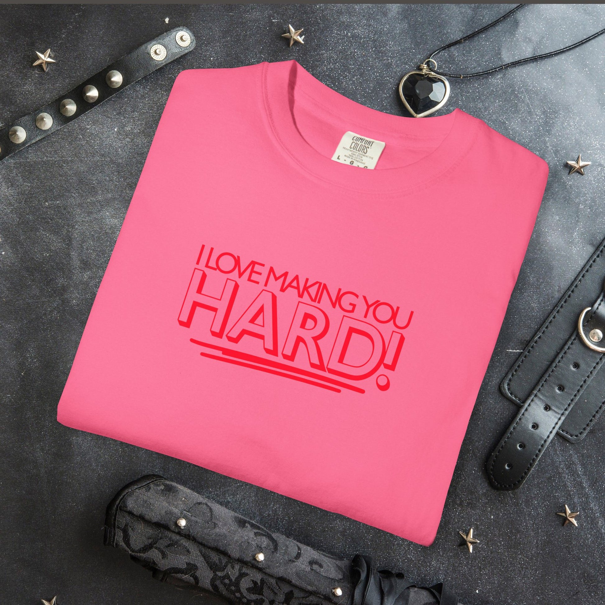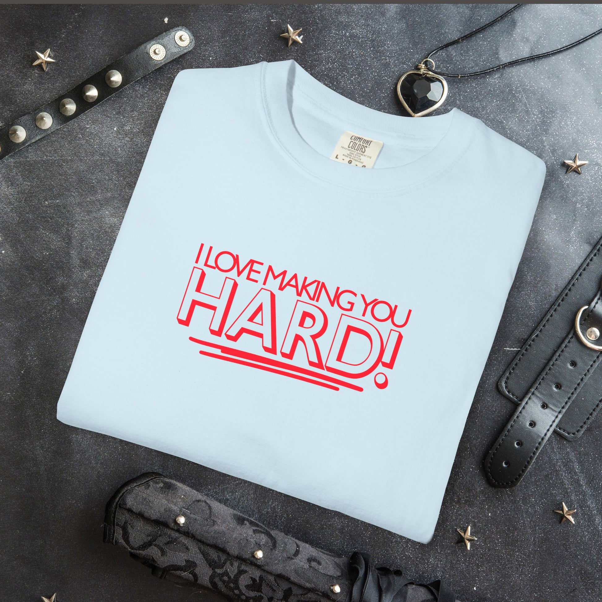 Naughty Girl Sexy T-Shirt, Inappropriate Comfort Colors Adult Tee, Hot Wife dirty top, NSFW Party Top, Sexually suggestive i love making you hard, fun summer top for events, concerts, picnics shocking womens apparel. This bold and daring T-shirt is perfect for adults looking to add a bit of spice to their wardrobe. Ideal for parties, events, and concerts, this tee is sure to make a statement. Product features - Available in sizes S to 4XL - Double-needle stitching for durability - Garment-dyed fabric for a soft texture - Made with 100% ring-spun US cotton for comfort - Relaxed fit for versatile styling Care instructions - Machine wash: cold (max 30C or 90F) - Do not bleach - Tumble dry: low heat - Iron, steam or dry: low heat - Do not dryclean
