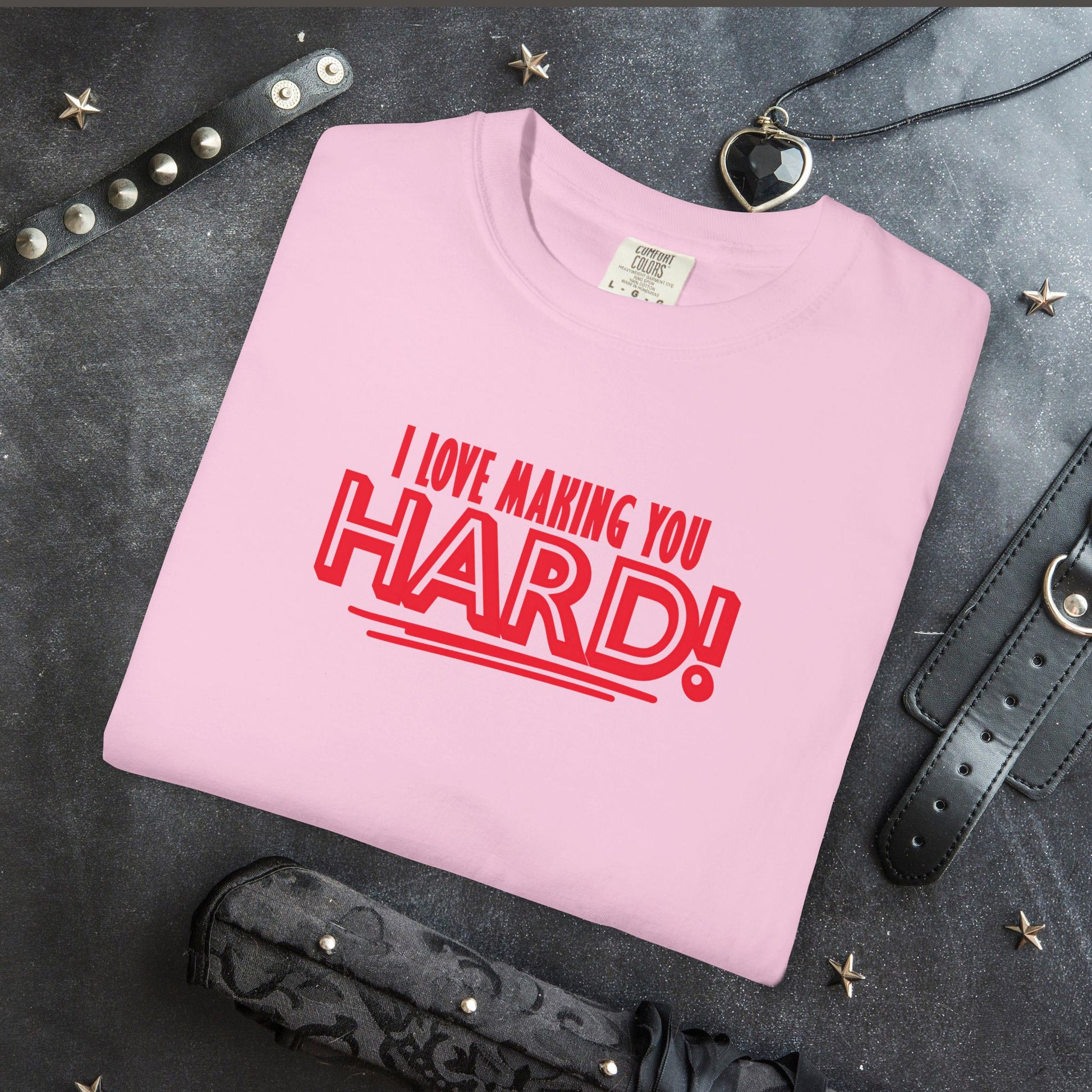 Naughty Girl Sexy T-Shirt, Inappropriate Comfort Colors Adult Tee, Hot Wife dirty top, NSFW Party Top, Sexually suggestive i love making you hard, fun summer top for events, concerts, picnics shocking womens apparel. This bold and daring T-shirt is perfect for adults looking to add a bit of spice to their wardrobe. Ideal for parties, events, and concerts, this tee is sure to make a statement. Product features - Available in sizes S to 4XL - Double-needle stitching for durability - Garment-dyed fabric for a soft texture - Made with 100% ring-spun US cotton for comfort - Relaxed fit for versatile styling Care instructions - Machine wash: cold (max 30C or 90F) - Do not bleach - Tumble dry: low heat - Iron, steam or dry: low heat - Do not dry clean