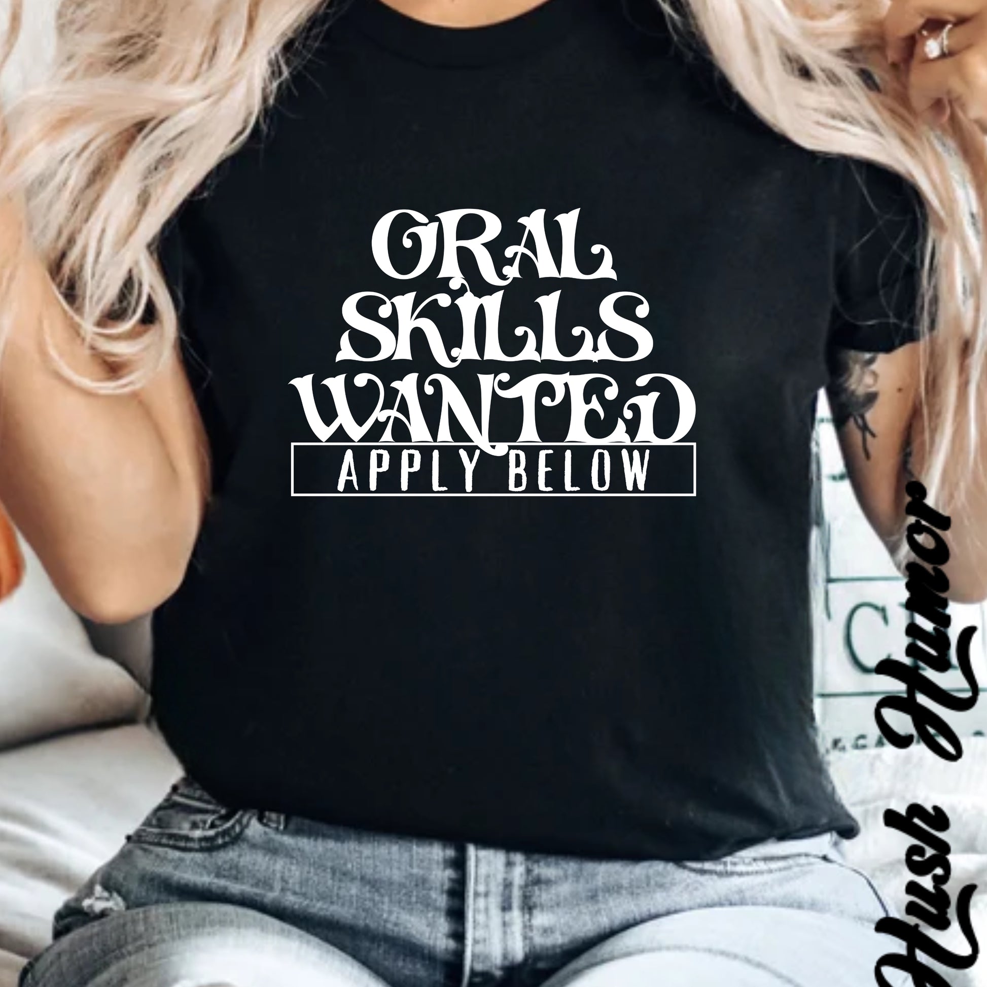 Oral Skills Wanted Funny T-Shirt – Naughty NSFW Unisex Gag Gift Tee