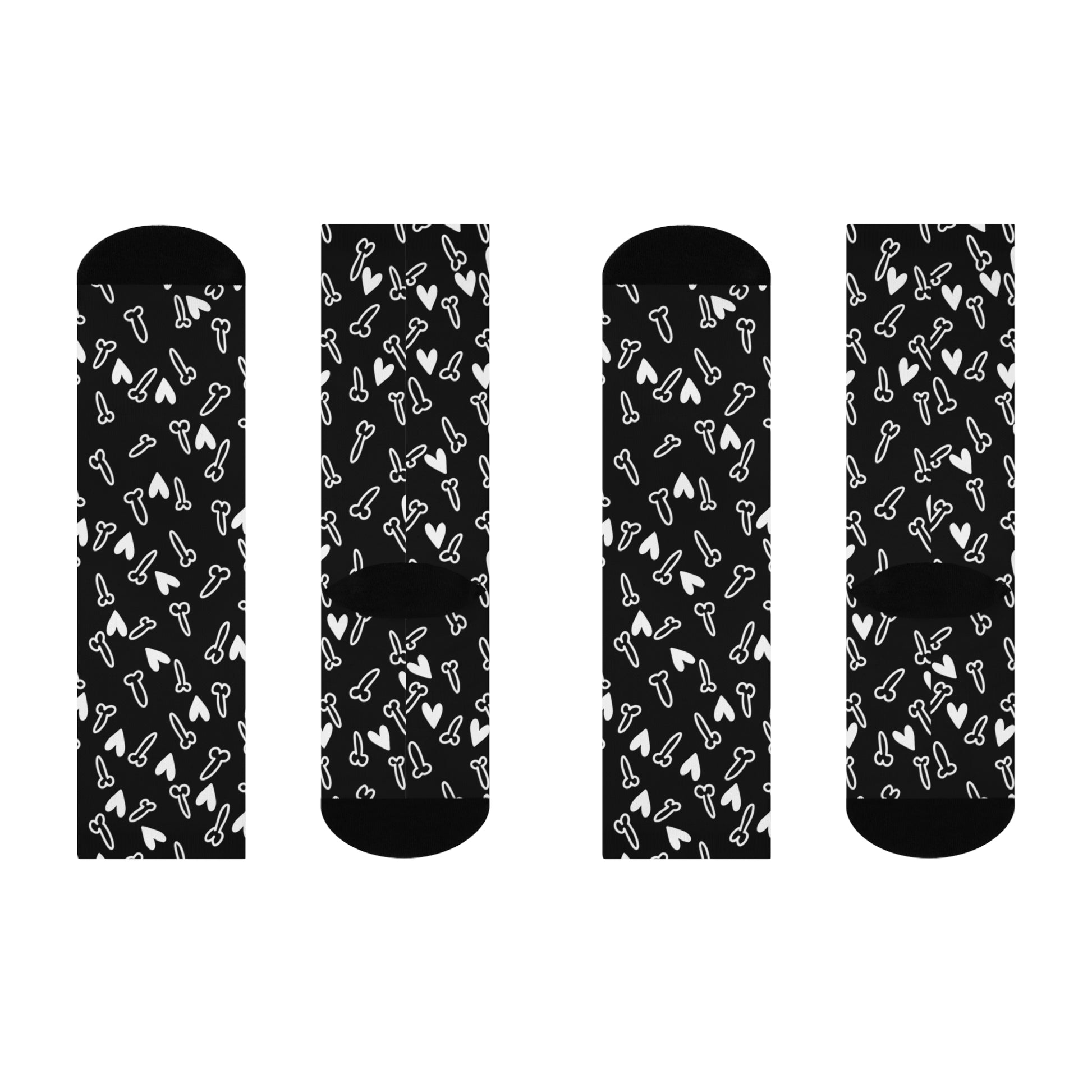 Step into cheeky style with these Cocks & White Hearts Cushioned Crew Socks — the perfect Valentine’s Day gag gift or playful novelty for someone with a wicked sense of humor. Featuring a hilarious all-over print of well-dressed willies, these socks bring laughs and comfort in equal measure.