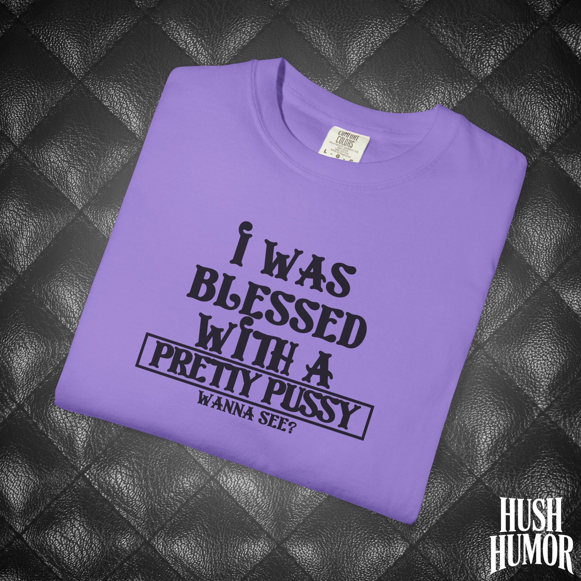 The “I Was Blessed With a Pretty Pussy” tee is for women who lead with confidence and aren’t afraid to flaunt it. Perfect for FEMdom power play, Dom/sub dynamics, or simply celebrating your sexy side, this Comfort Colors shirt mixes bold humor with all-day softness. Whether you’re wearing it for a naughty night in, a wild party, or gifting it to a confident MILF, it’s guaranteed to get attention.