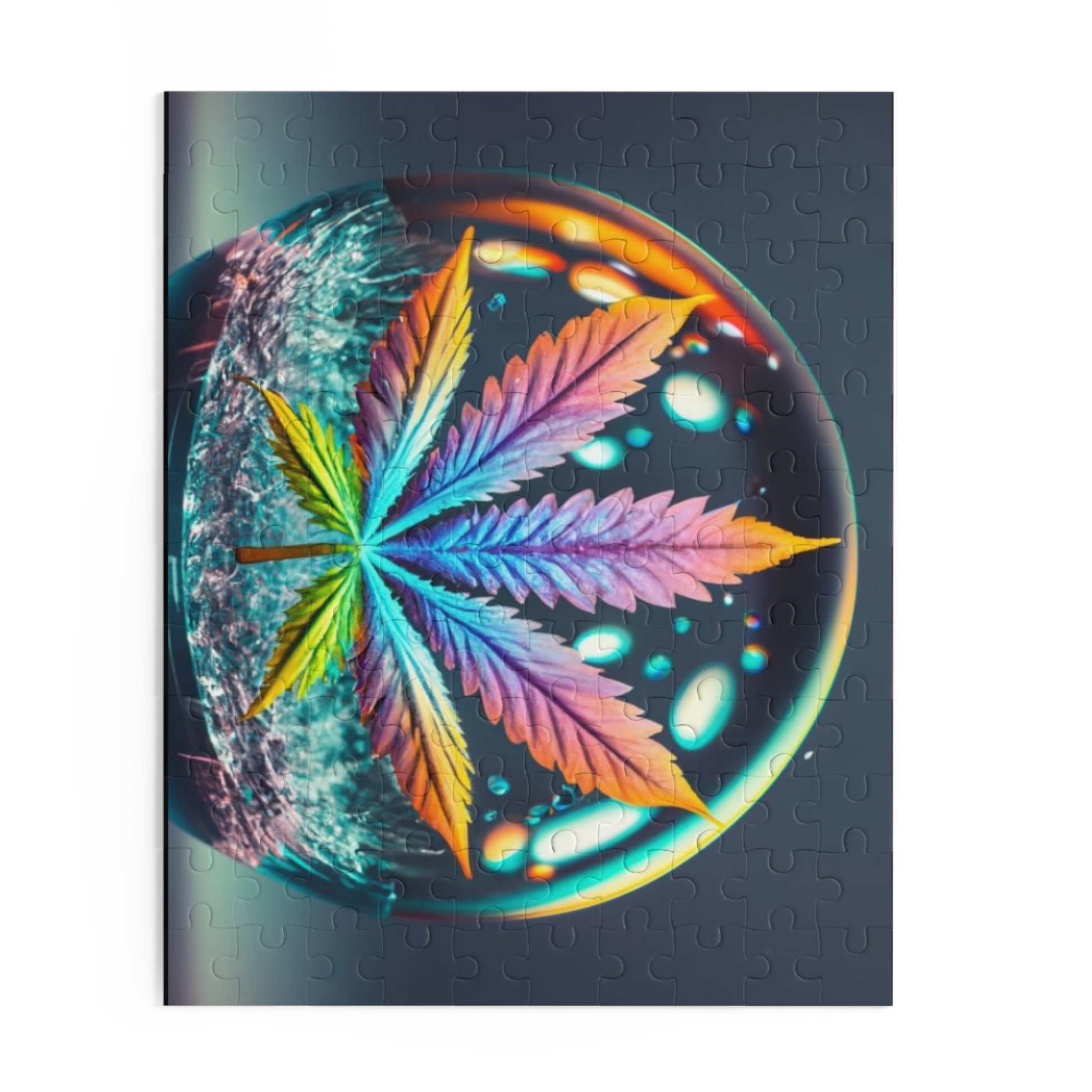 Psychedelic Leaf Tripping in a Glass Orb – Vibrant Adult Jigsaw Puzzle