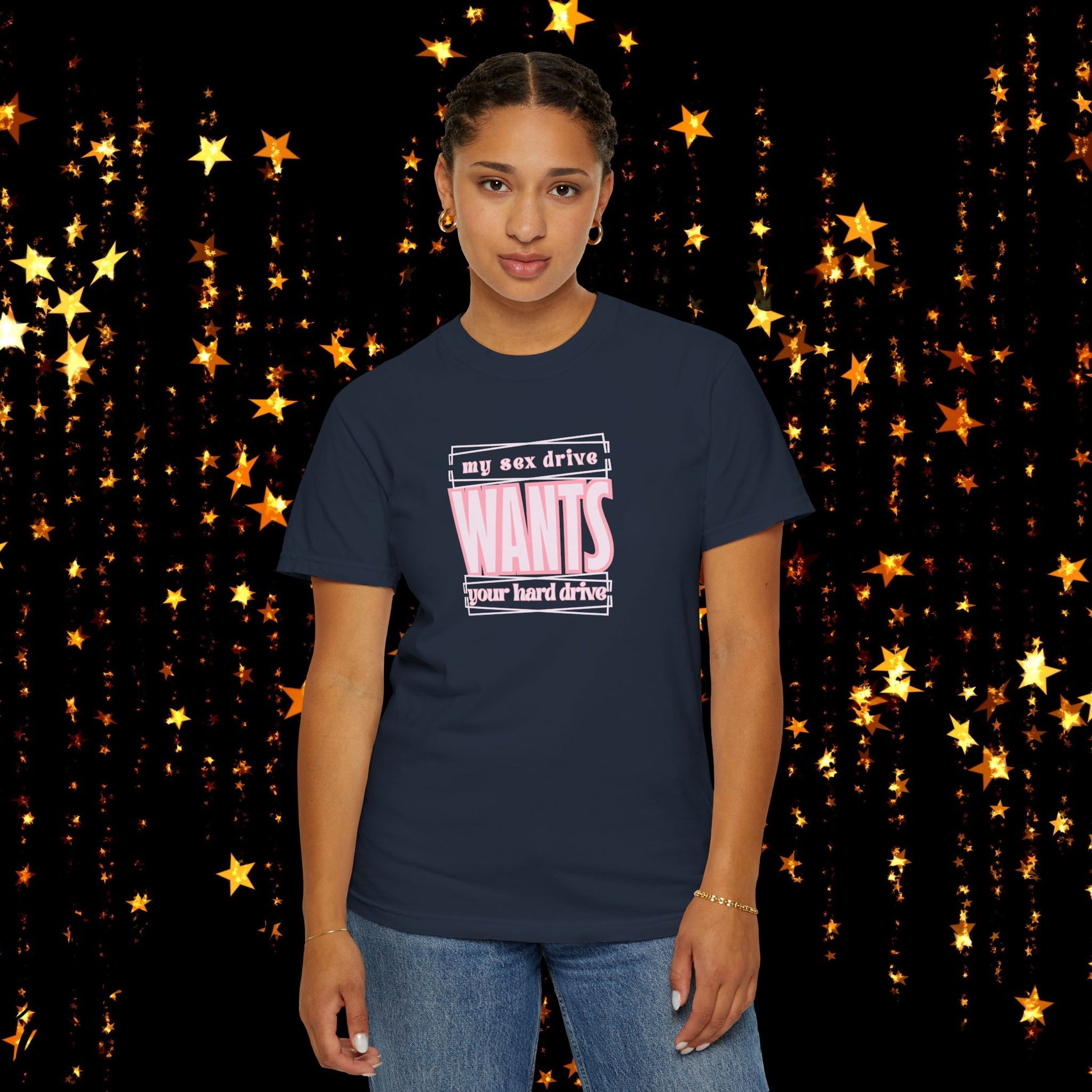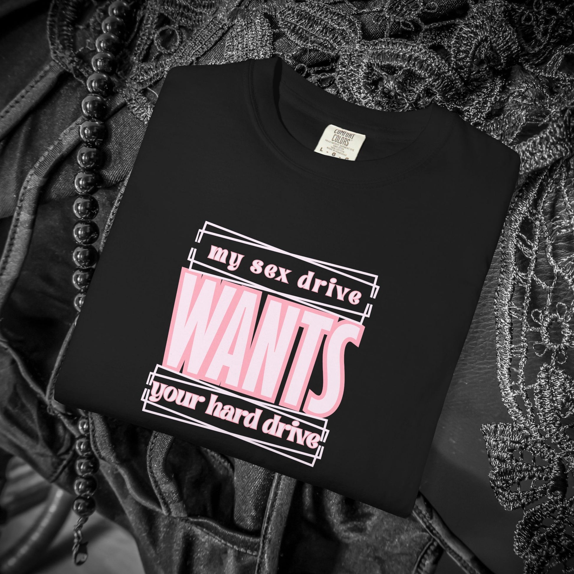 My Sex Drive Wants Your Hard Drive naughty suggestive women's t-shirt, fun adult apparel