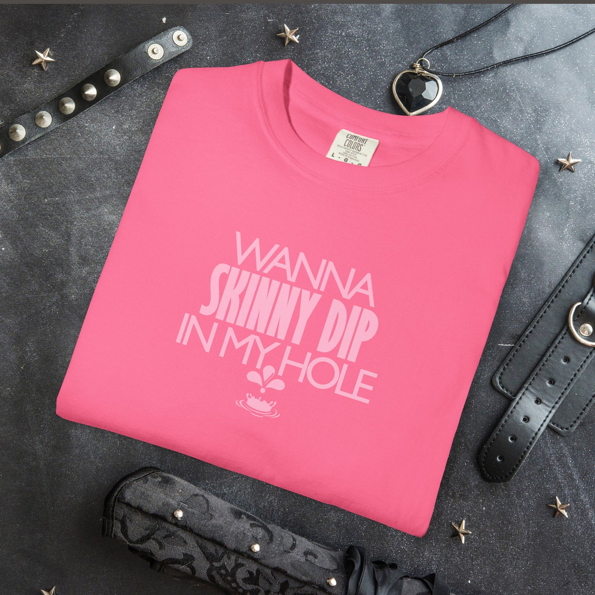The “Wanna Skinny Dip in My Hole” tee is pure flirty fun with a naughty twist. Perfect for summer parties, festivals, or as a jaw-dropping gift, this shirt blends cheeky humor with all-day comfort. Wear it when you want to spark a laugh, turn some heads, and make sure nobody forgets you were there.
