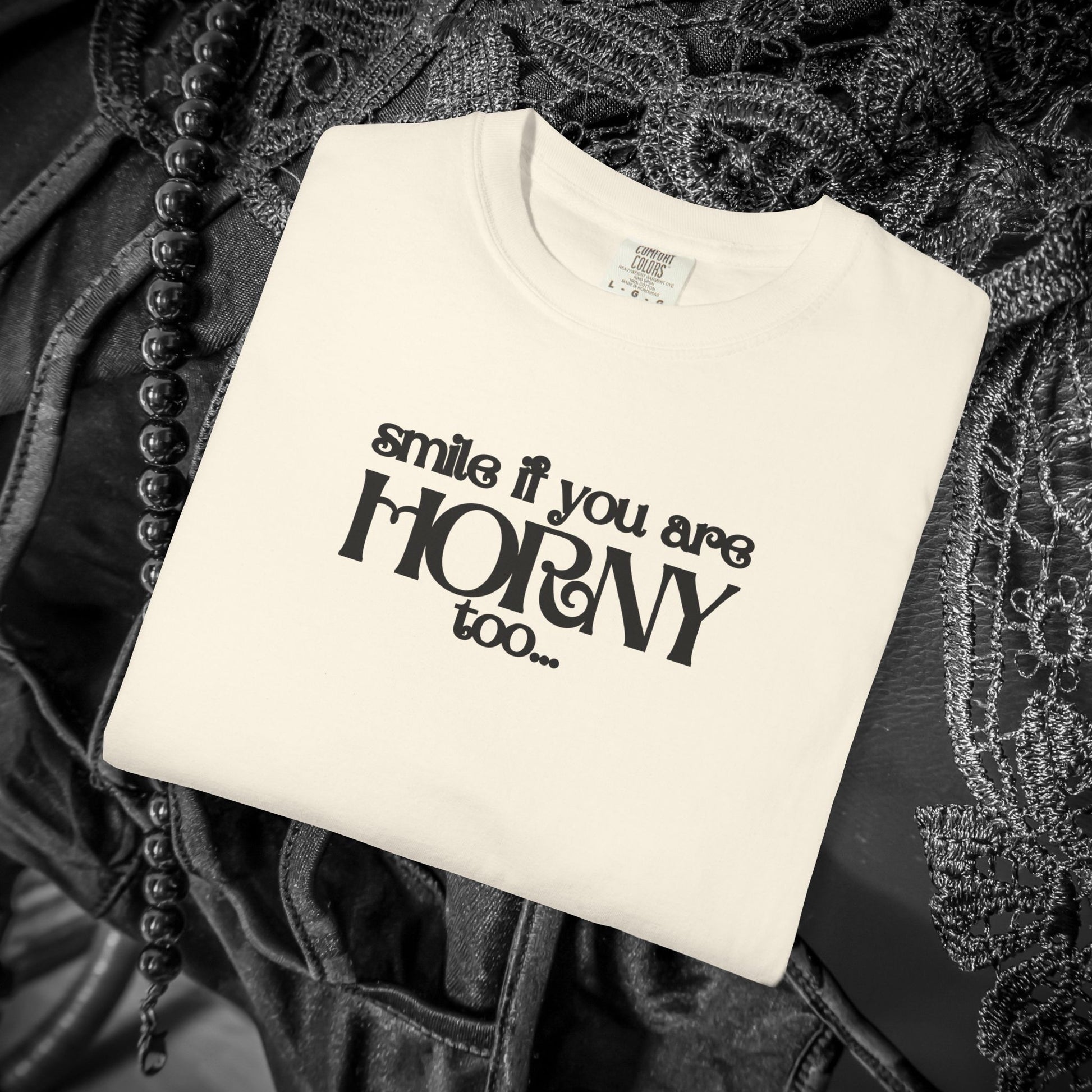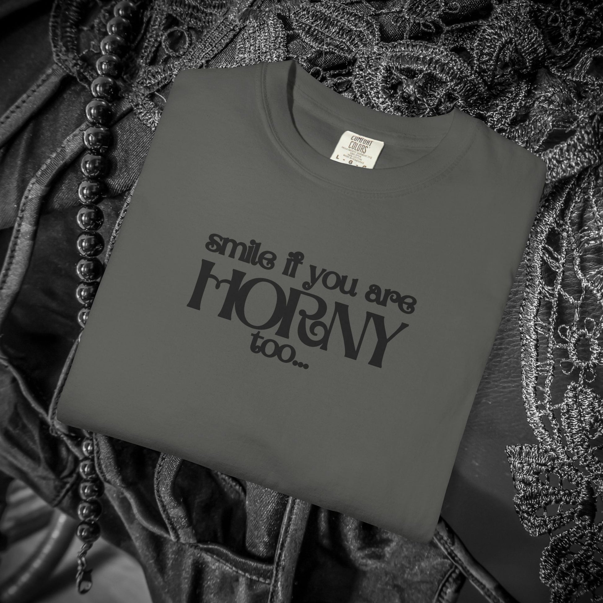 Smile If You Are Horny Too Naughty Women's Shirt – Fun Wife Gift, Offensive Comfort Colors NSFW T-Shirt, Dirty Joke Tee, Rude Ladies Top